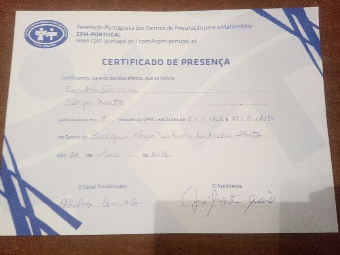 Ola noivinhas!! Hoje foi i nosso ultimo dia do CPM, eu e o meu noivinho gostamos muito, partilham-se experiencias entre casais, ouvem-se depoimentos de casais ja casados e abordamos assuntos que nunca tinhamos pensado antes. A coisa mais importante é...
