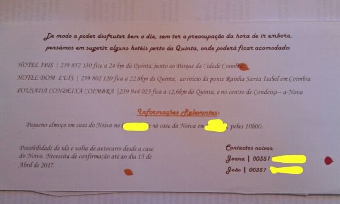 Ola noivinhas... Vamos casar em Braga e vai haver muitas pessoas a deslocarem-se de Fatima e Viseu. Ando a ver hoteis e a pedir preços para poder facilitar a vida aos convidados e dar-lhes os preços mais baixos disponiveis... Vamos entregar os...