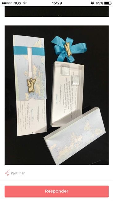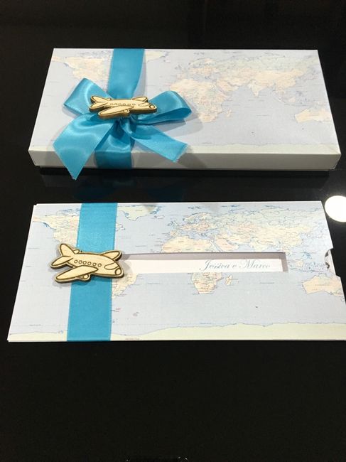 Boa noite minhas queridas!!! Os nossos convites estão prontos a caixa e para os padrinhos e pais e o de baixo e para os convidados Achamos algo original para este tema sem ser o bilhete de avião... Adorei o pormenor do avião andar conforme puxamos o...