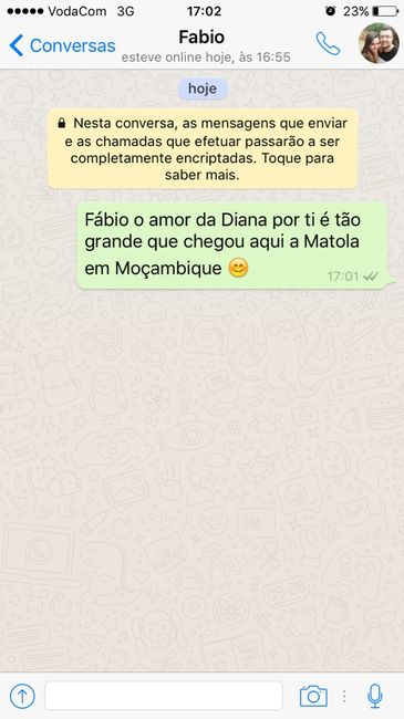 Olá meninas!! Queria fazer a surpresa do AMOR SEM FRONTEIRAS pro meu nomorido hoje dia 01/11 Quem puder me ajudar e entrar nesta brincadeira, é só enviar a mensagem assim: Fábio o amor da Diana por ti é tão grande que chegou aqui em...