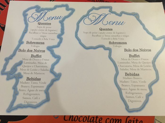Bom dia noivinhas... já não abria um debate a algum tempinho... já tinha saudades☺️ Hoje queria saber a vossa opinião sobre o menu que fizemos a qualidade da foto não é muito boa mas da para perceber! O nosso tema e viagens resolvemos fazer o mapa de...