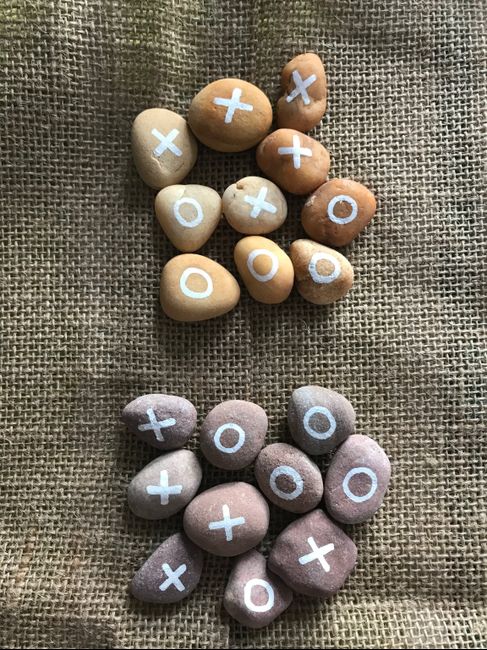 Venho-vos mostrar o resultado final das lembranças que preparámos para as crianças! São jogos do galo. No interior do saco estão as peças, que são conjuntos de pedras pintadas. Fizemos os sacos em serapilheira, com 6 cores de linhas, para agradar a...