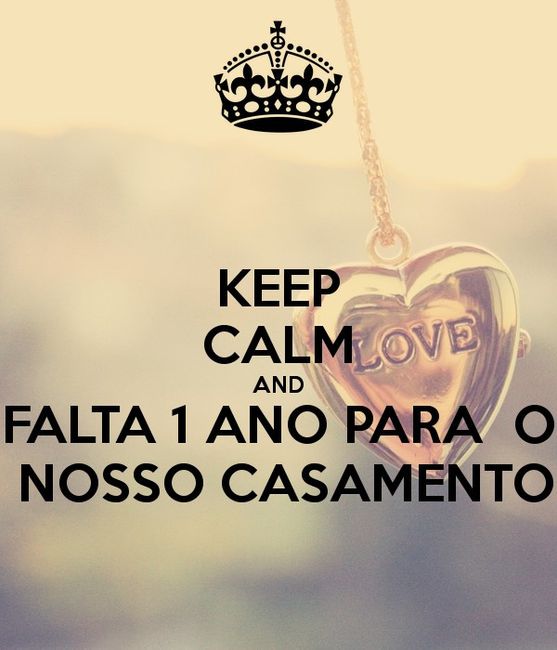 1 ano Bom dia noivinhas😙É verdade, falta um ano para o nosso grande dia! A partir de hoje, muitas coisas serão a minha última vez como solteira. Que chegue rapidinho