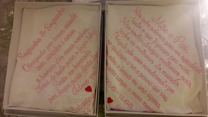 Meninas queria oferecer aos pais e avós um lencinho gravado de lembrança com aquelas frases muitos bonitas mas são todos mt caros alguém que conheça onde fazem baratos , acessíveis? Se sim digam por favor e o valor obrigado
