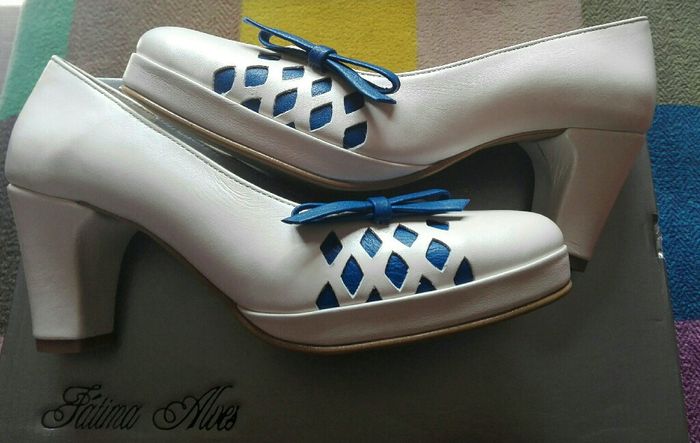 Olá meninas Hoje fui buscar os meus sapatos para o dia C, ao Atelier Teresa Alves. Fui com algum receio com medo que não ficasse com tinha idealizado. Assim que os vi, todo o meu medo e receio desapareceram 😉 O laço azul é para coincidir com o fato...