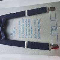 Boa tarde novinhas Venho vos mostrar o convite que fiz para o menino das alianças. Não está muito bem escrito mas acho que está bonito na mesma. 2 folhas de papel prateado uns suspensórios um laço,...