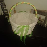 Olá olá A pedido de um noivinha que me pediu para enviar o meu cesto das lembranças, aqui está ele acabadinho de fazer. Acabei por colocar 1 laço grande de organza em cada lado para o tecido não ficar...