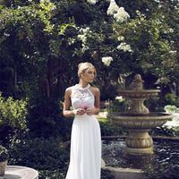 Olá meninas!!! Impossível não ficar apaixonada pelos modelos de Anna Campbell! Este é um vestido do corte império, ideal para noivinhas grávidas, com um decote quadrado e um penteado apanhado, muito...