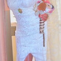 Um vestido de sonho, com umas coistas e uma cauda de sonho! Não consegui encontrar uma foto do vestido pela frente, assim que vamos imaginar como gostariam que este vestido fosse, meninas! Eu voto por...