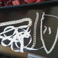 Olá meninas gostam? Aqui tem a minha tiara do cabelo que aperta em baixo com um laço de cetim branco.O meu colar, brincos e pulseira obrigadas