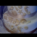 Este é o meu bolo mas a promenor das flores de lado n gosto muito e dps a parte de cima sao flores pintadas e gostava de por um top de bolo e umas coisinhas a substituir as flores nos cantos.A 2° foto...