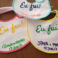 Olá noivinhas! Hoje foi dia de tratar das lembranças dos bebés e das grávidas! Comprei um pack de 5 babetes de cores diferentes e lisos. Utilizei canetas de tecido e fiz tudo à mão, como é só uma...