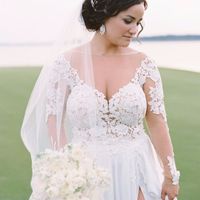 Brides lindas Decote, renda, tecido transparente, brincos grandes, 100% branco...este look tem de tudo um pouco... Ela é uma noiva elegante e sexy. Vocês também acham? E que nota este look merece? ...