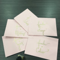 Já tenho os convites que ficaram incriveis e acabei por também dar um toque pessoal e mais íntimo ao realizar a caligrafia dos nomes das familias. O que acham? Ter um jeitinho para as manualidades...