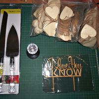 Allo! Hoje venho só mostrar umas coisinhas que chegaram hoje do Ali, os talheres do bolo (que vou personalizar pois não gosto destes cabos), os corações para as assinaturas, e o topo do bolo com a...